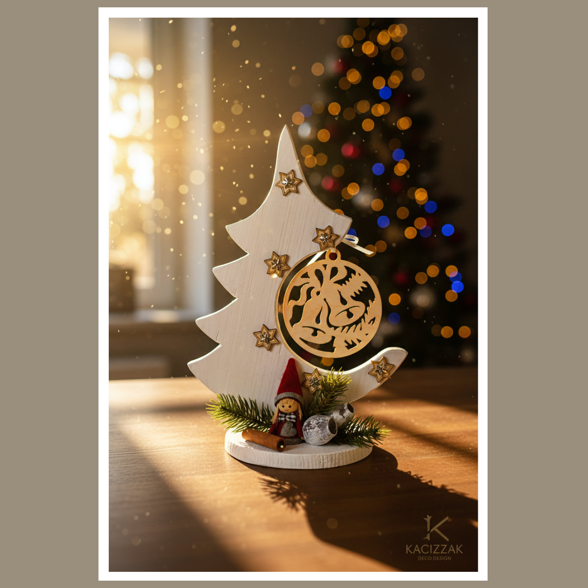 Ta drewniana choinka z bombką to wyjątkowa ozdoba bożonarodzeniowa, która wprowadzi do Twojego domu prawdziwie świąteczny nastrój. Wykonana z naturalnego drewna i ozdobiona ręcznie, stanowi doskonały przykład polskiego rękodzieła, łączącego tradycję z nowoczesnym designem.