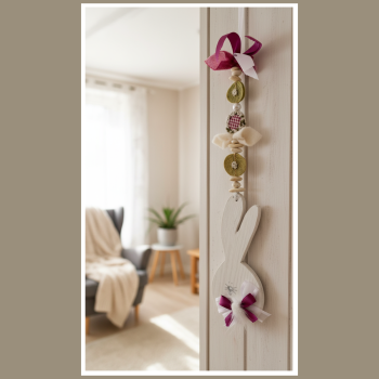 Najładniej wygląda na drzwiach wejściowych (np. przy klamce), na drzwiach wewnętrznych, w oknie lub w przedpokoju. Możesz też zawiesić ją w kuchni albo przy regale z książkami, żeby dodać wnętrzu wiosennego akcentu. Jeśli lubisz spójne aranżacje, połącz ją z innymi dekoracjami w podobnym klimacie.