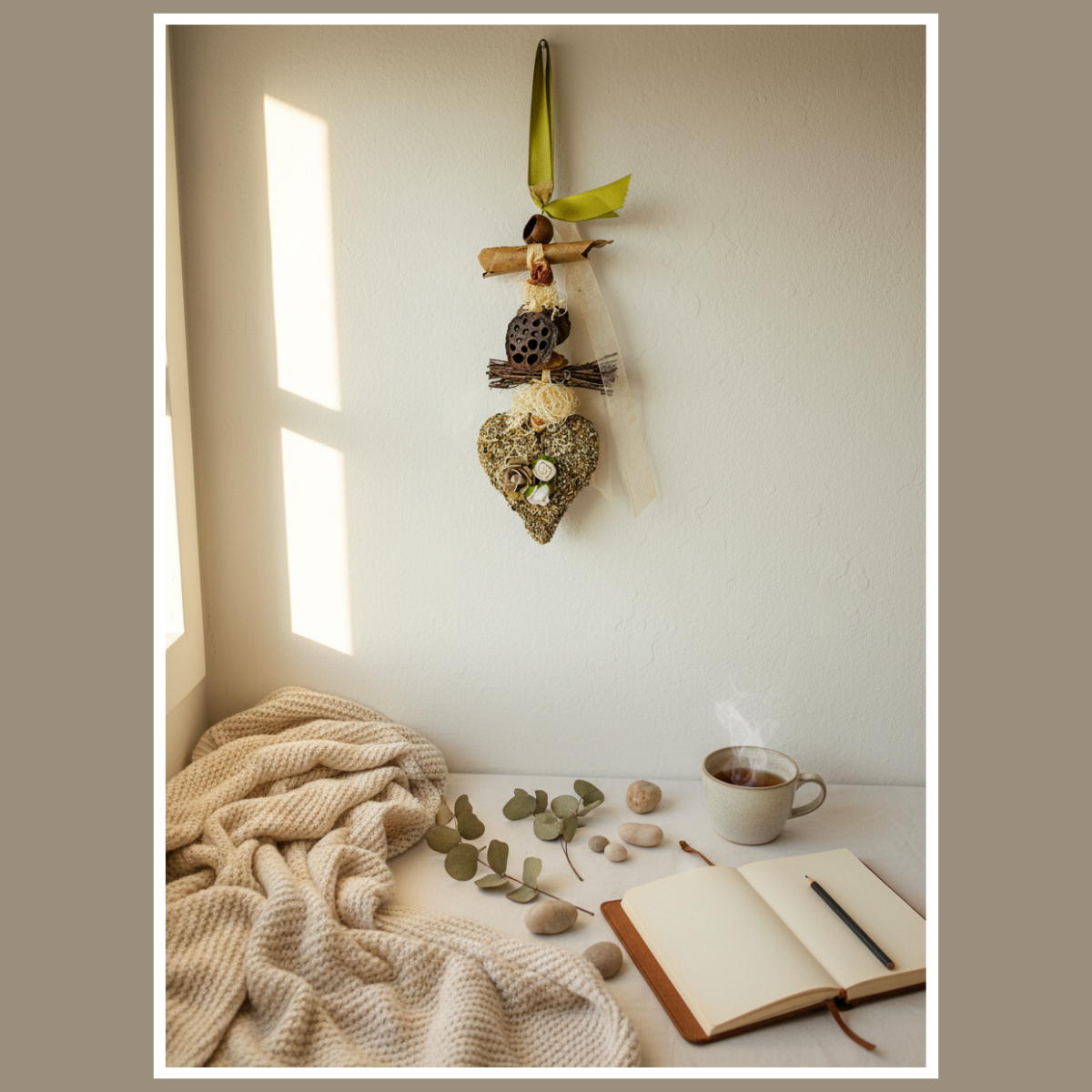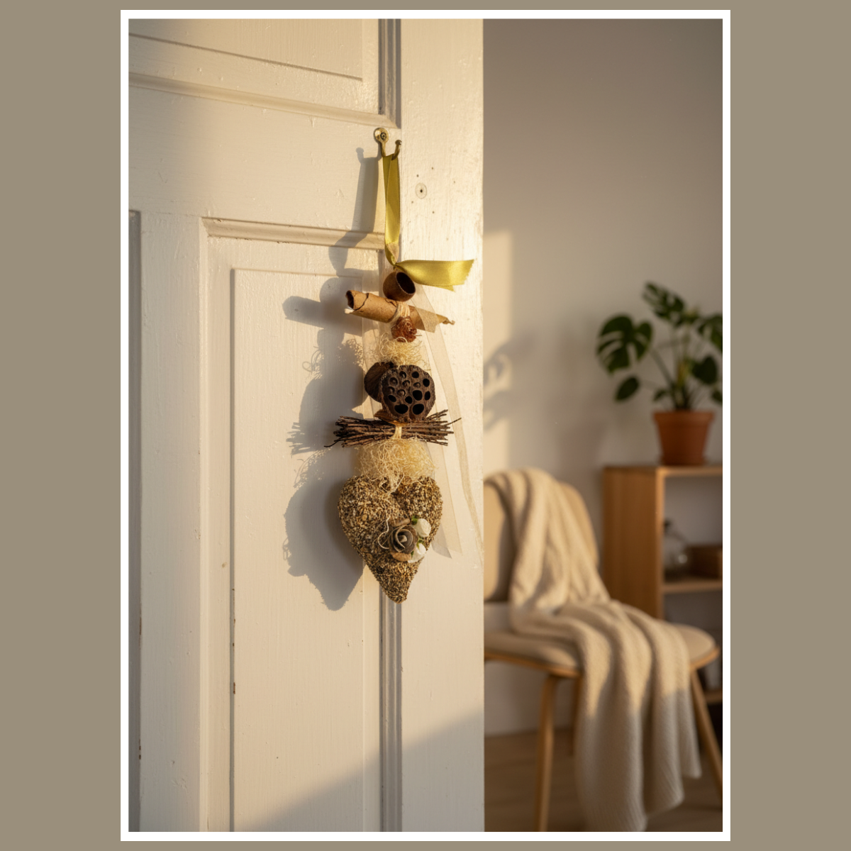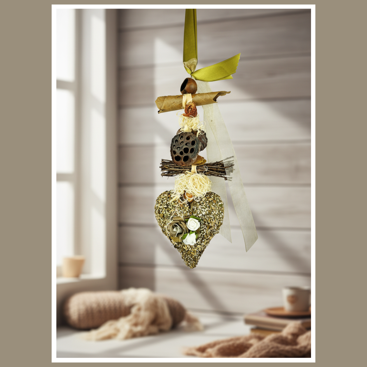 Chcesz dodać wnętrzu przytulności, ale bez przeładowania dodatkami? Dekoracja wisząca serce z ziół to naturalny akcent, który od razu robi klimat. Jest lekka i delikatna, a jednocześnie przyciąga wzrok dzięki fakturom i spokojnej kolorystyce. To ozdoba, którą możesz zostawić na dłużej, ponieważ pasuje przez cały rok.