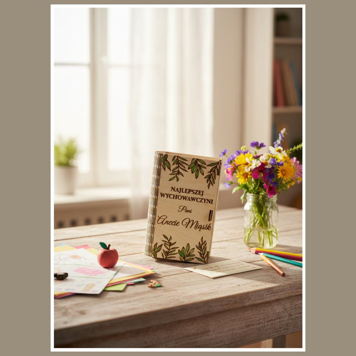 Drewniana kartka dla nauczyciela – co otrzymujesz?