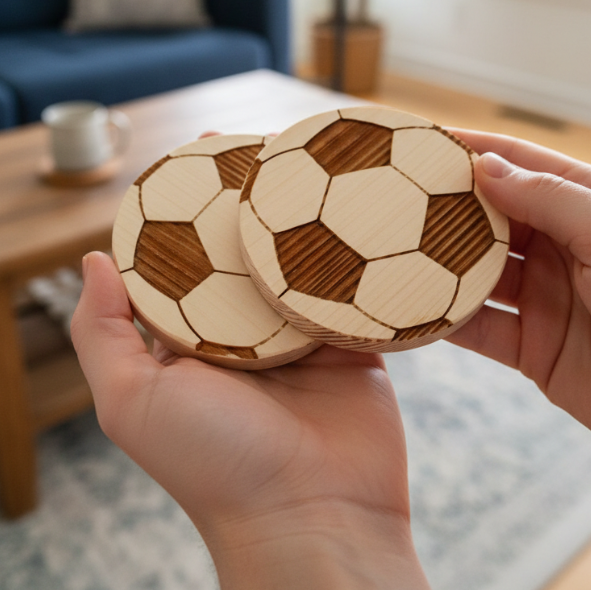 Drewniane podkładki piłkarskie z motywem piłki nożnej to drobny gadżet, który od razu robi klimat w pokoju fana sportu. Sprawdzą się pod kubek z herbatą, kakao czy wodę po treningu. To też fajny pomysł na mały prezent – do domu, szkoły lub na zakończenie sezonu.