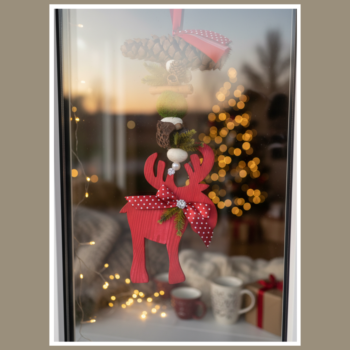 Idealna na drzwi, ścianę lub na okno jako element świątecznego stroika. Każdy renifer jest ręcznie robiony z dbałością o detale, dzięki czemu nie ma dwóch identycznych egzemplarzy.