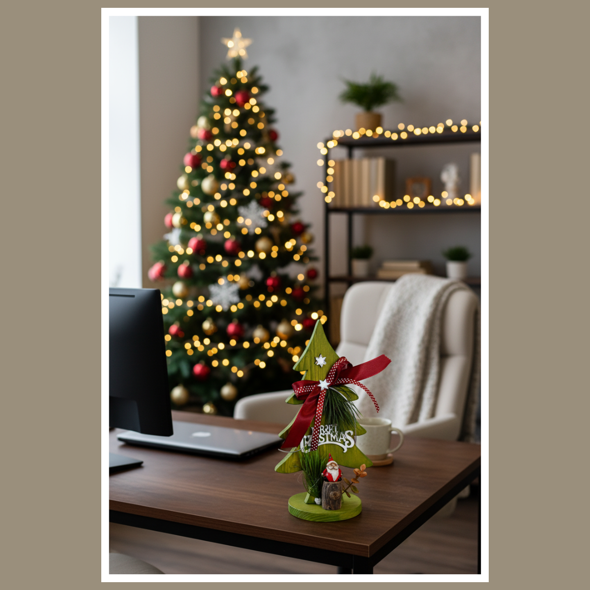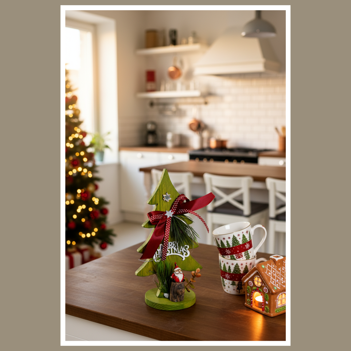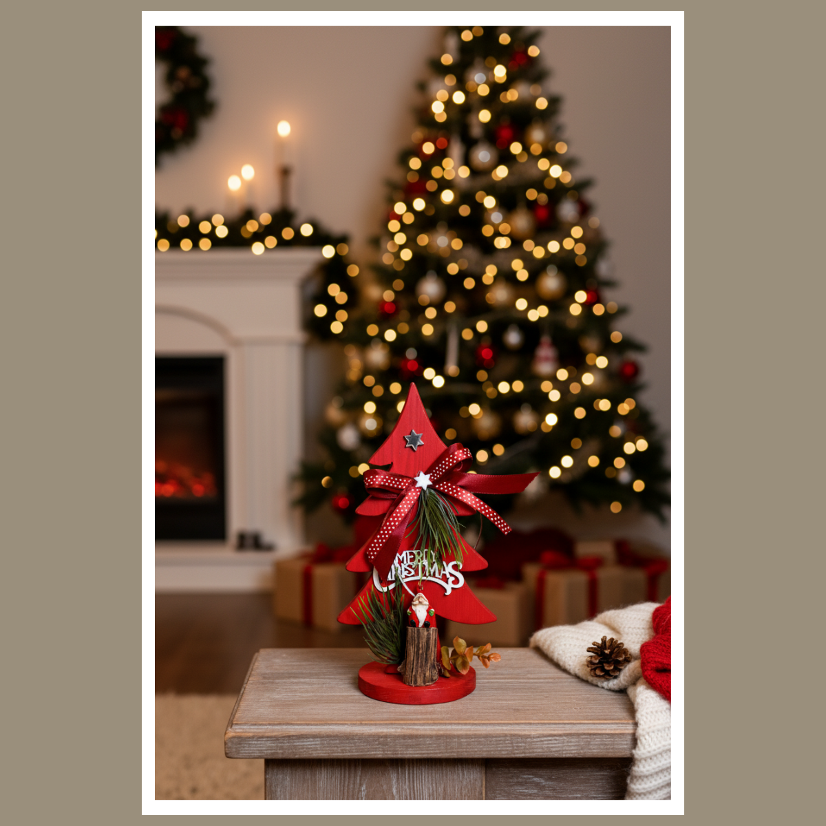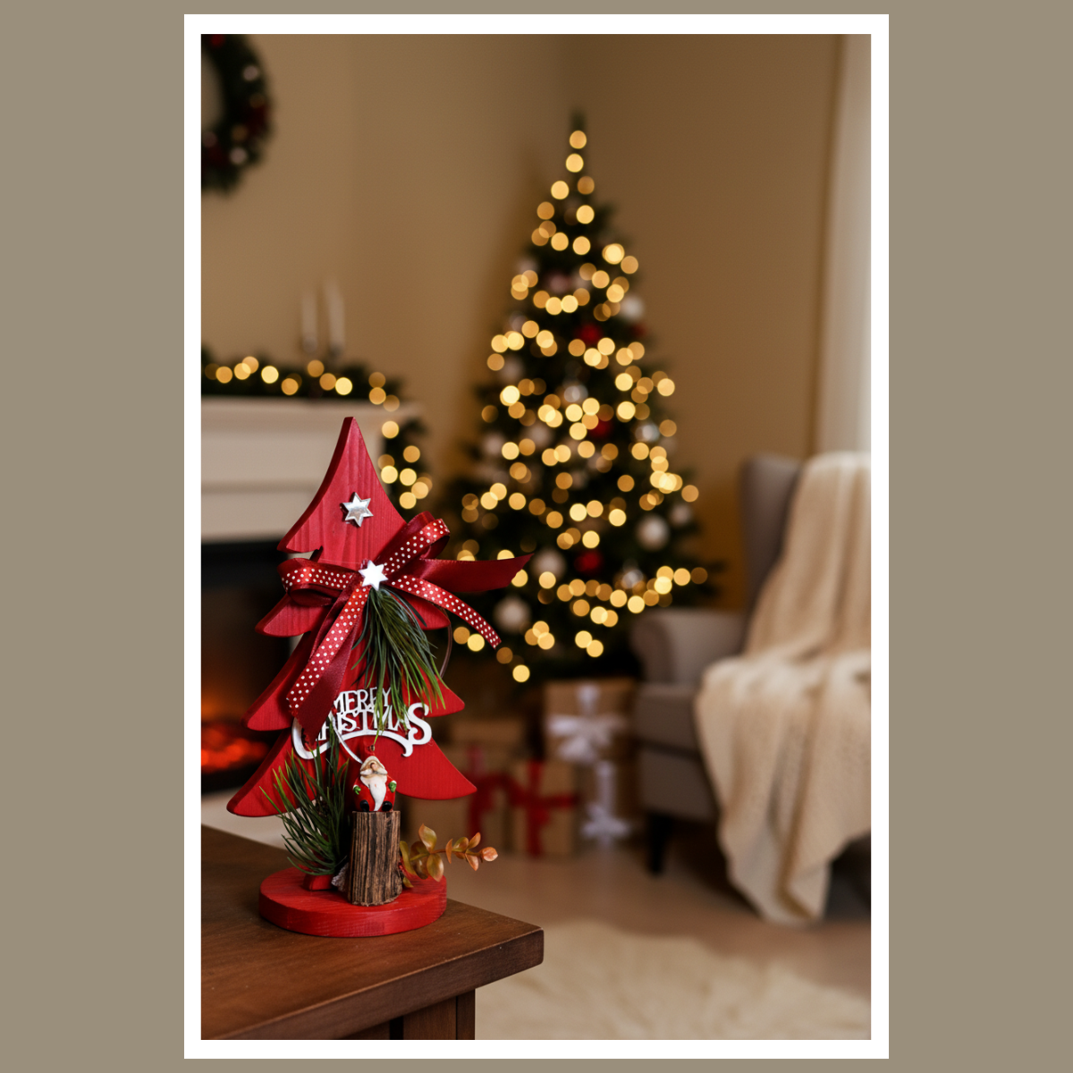 Ta ozdoba bożonarodzeniowa z drewna doskonale sprawdzi się jako dekoracja stołu, komody, parapetu lub biurka. Jej uniwersalny styl pasuje do każdego wnętrza – od rustykalnego po nowoczesny.