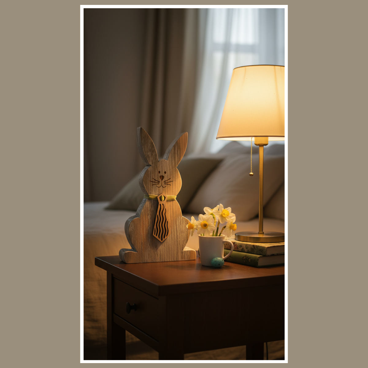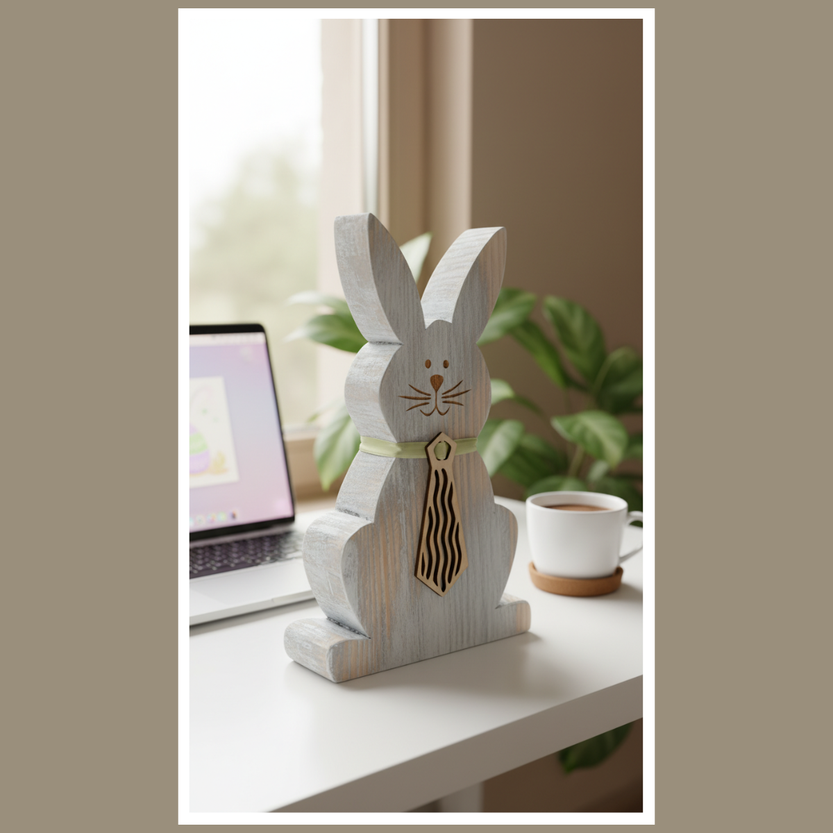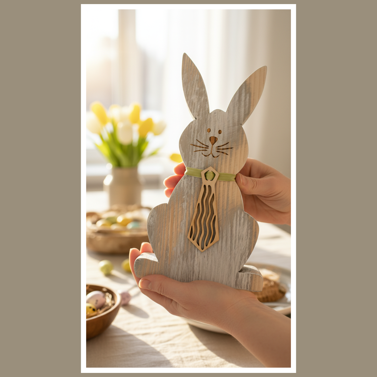 Drewniany zając z krawatem – dekoracja wielkanocna do domu