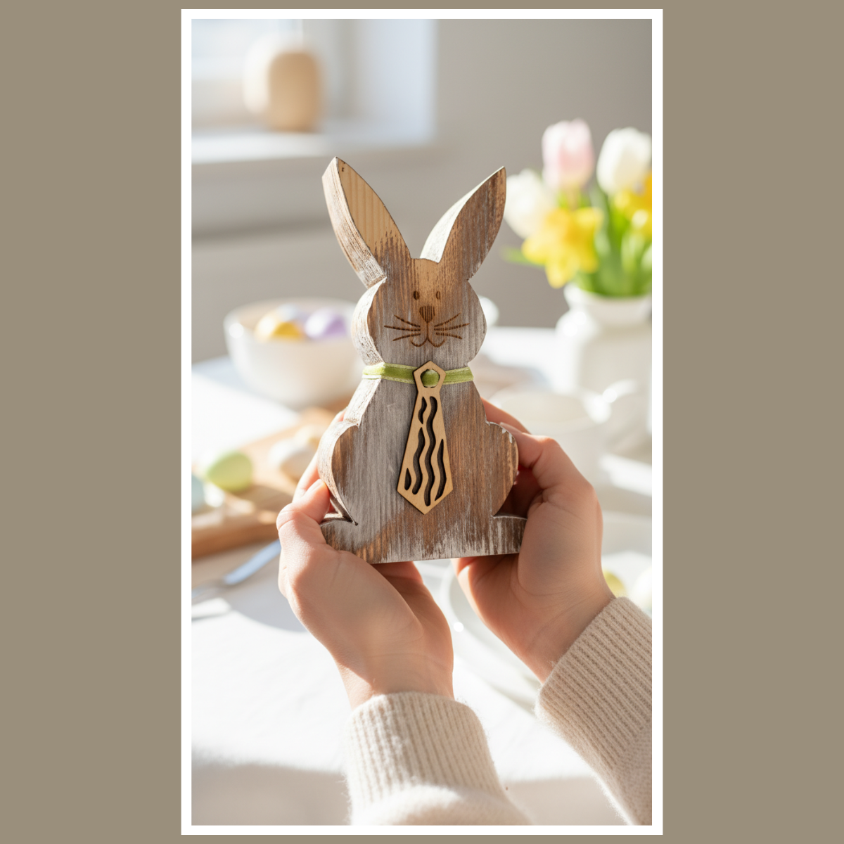 To mały detal, który robi dużą różnicę. Jest lekki, a więc łatwo zmienisz jego miejsce. W dodatku świetnie wygląda solo, ale pasuje też do innych ozdób. Dlatego możesz zbudować całą kompozycję na Wielkanoc. A jeśli lubisz minimalizm, zając nadal będzie „w punkt”.