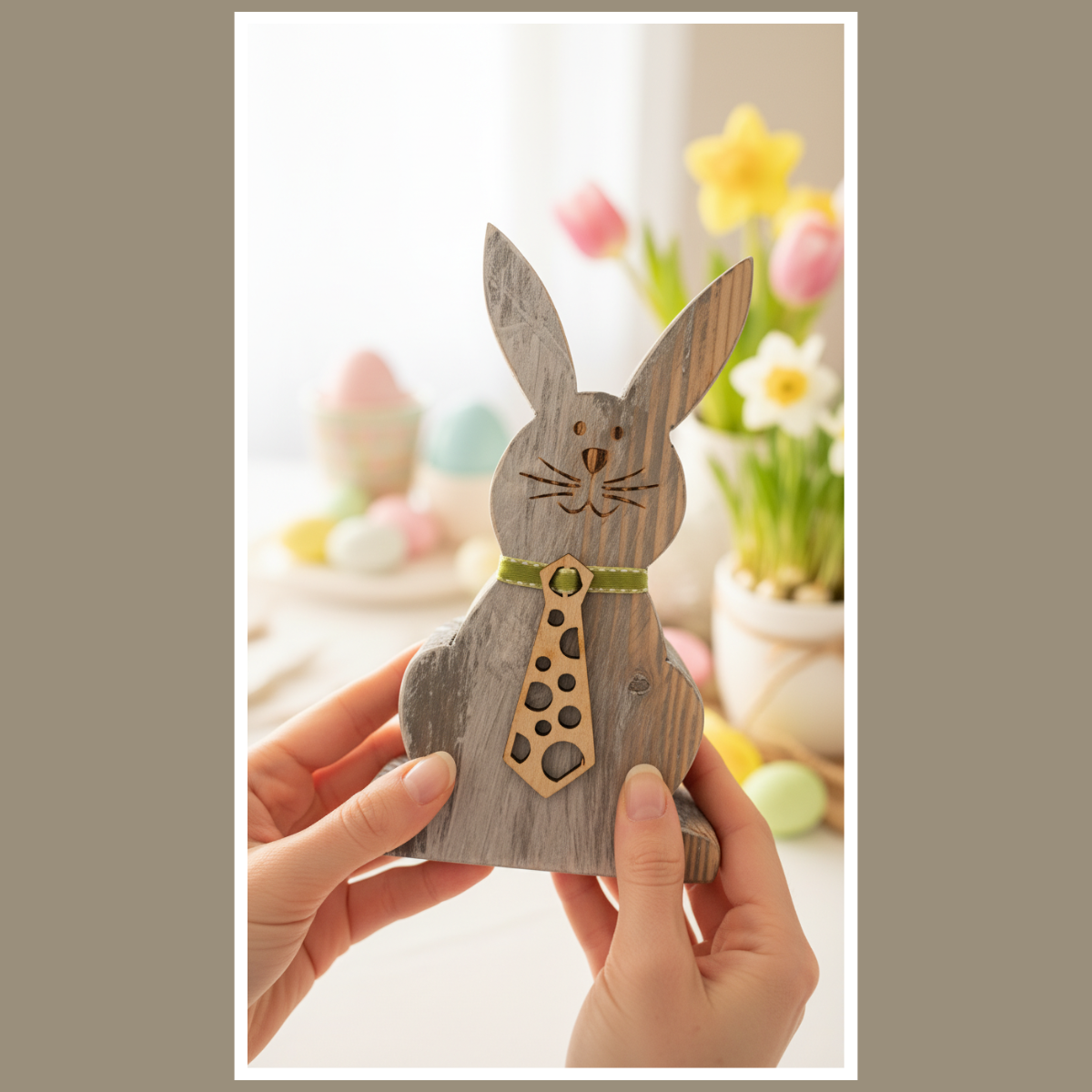 Mały drewniany zając wielkanocny w kolorze białym to dekoracja, która dodaje wnętrzu lekkości. Jest prosty, a jednocześnie uroczy. Dlatego pasuje do jasnych aranżacji oraz do naturalnych dodatków. Co ważne, zając ma ozdobną muszkę, więc wygląda elegancko i „na święta”.