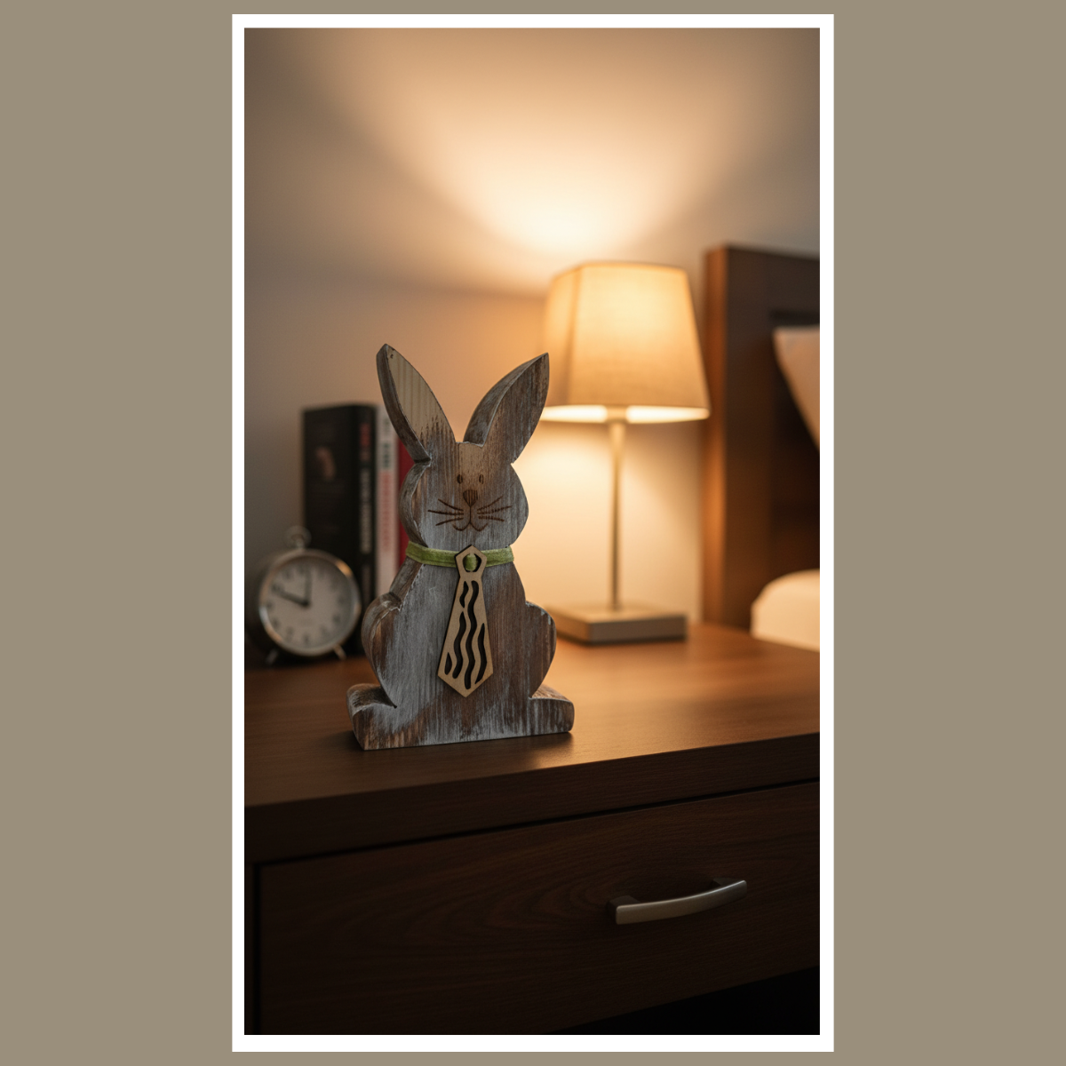 Mały drewniany zając z krawatem to elegancka dekoracja wielkanocna, która pasuje do naturalnych wnętrz. Jest dostępny w 2 wersjach: przecierany szary oraz przecierany brąz. Postaw go na stole, komodzie lub półce, a od razu zrobi wiosenny klimat.