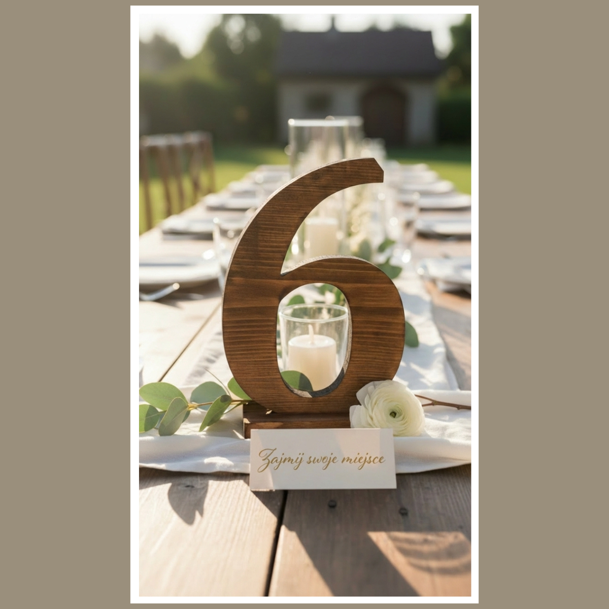 To prosty detal, który porządkuje przestrzeń. Dodatkowo ułatwia organizację, więc goście szybciej trafiają na swoje miejsca. Co więcej, numery wyglądają świetnie na zdjęciach. A jeśli zależy Ci na spójności, łatwo dobierzesz do nich inne dodatki.