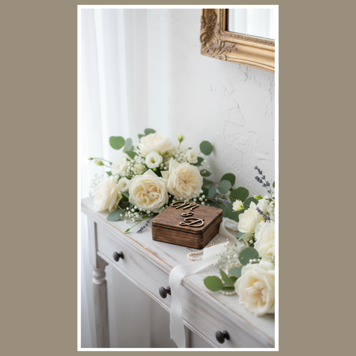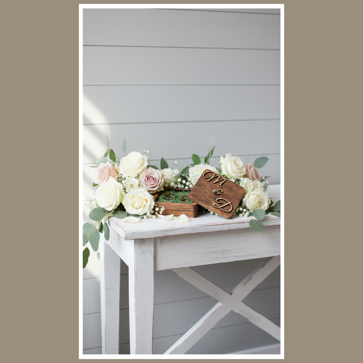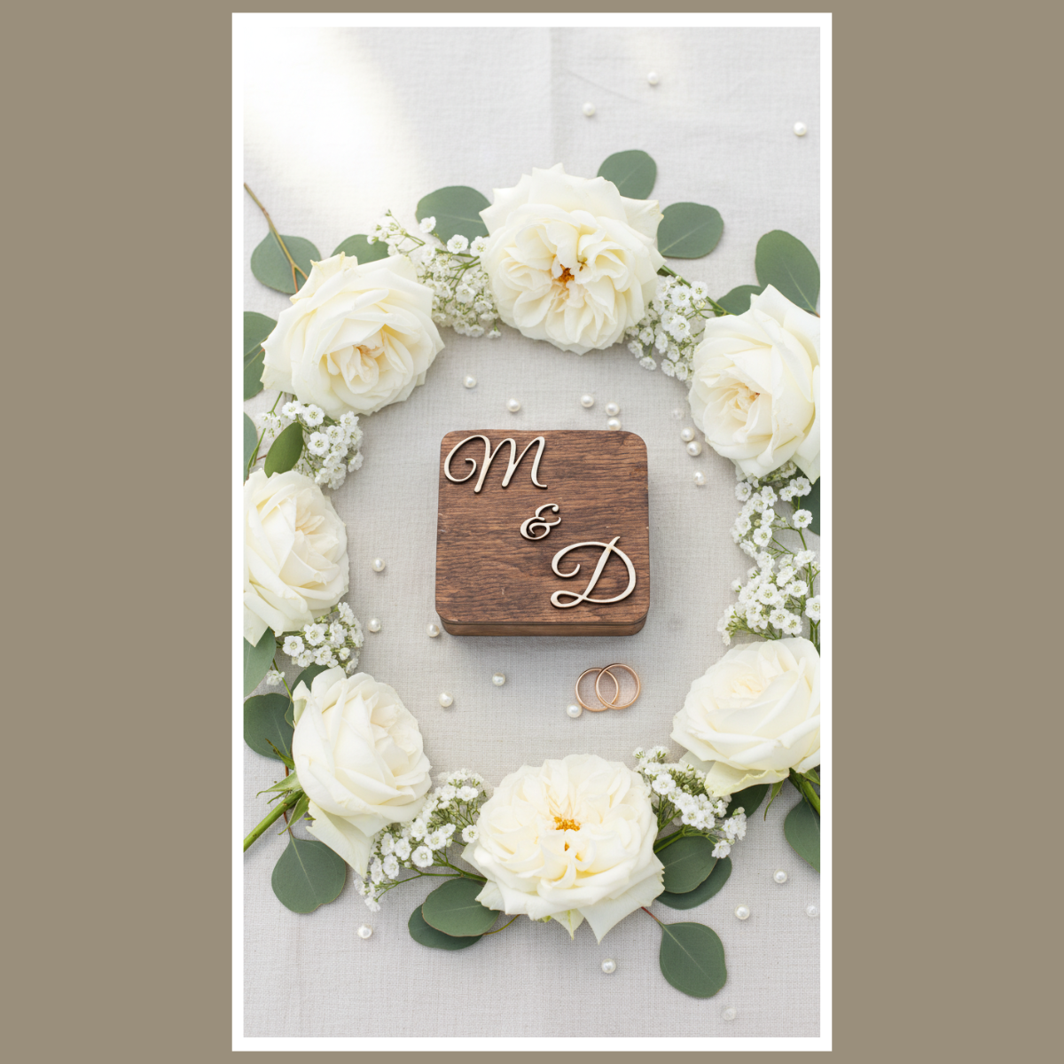 Pudełko na obrączki z inicjałami to detal, który robi różnicę podczas ceremonii. Jest minimalistyczne, a jednocześnie wygląda bardzo elegancko. Dzięki temu pasuje do ślubów klasycznych, boho i rustykalnych. Co ważne, po uroczystości zostaje jako pamiątka na lata.