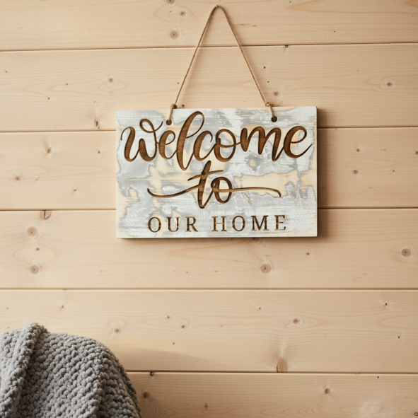 Szukasz dodatku, który ociepli wejście do domu i będzie pasował przez cały rok? Drewniana tabliczka „Welcome to Our Home” to klasyczna dekoracja w naturalnym stylu. Jest czytelna, lekka wizualnie i świetnie wygląda zarówno na drzwiach, jak i na ścianie w przedpokoju.