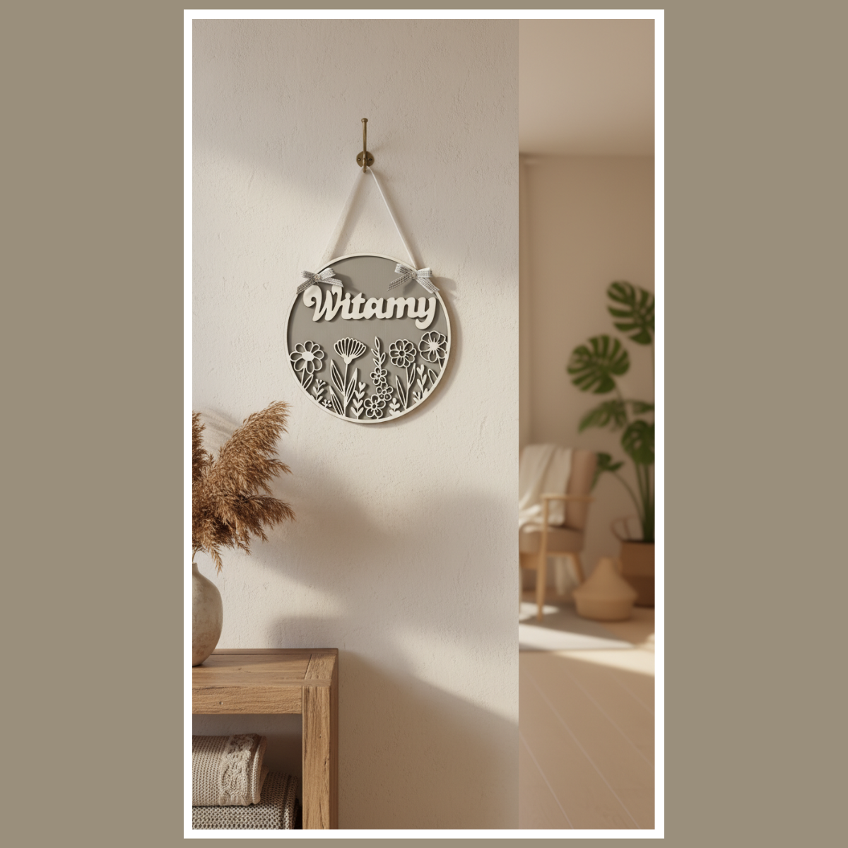 Szukasz dodatku, który od razu ociepli wejście do domu? Tabliczka na drzwi „Witamy” – szara z kwiatami to elegancka i uniwersalna dekoracja. Szare tło podkreśla biały, przestrzenny napis „Witamy”, a roślinny wzór dodaje całości lekkości.