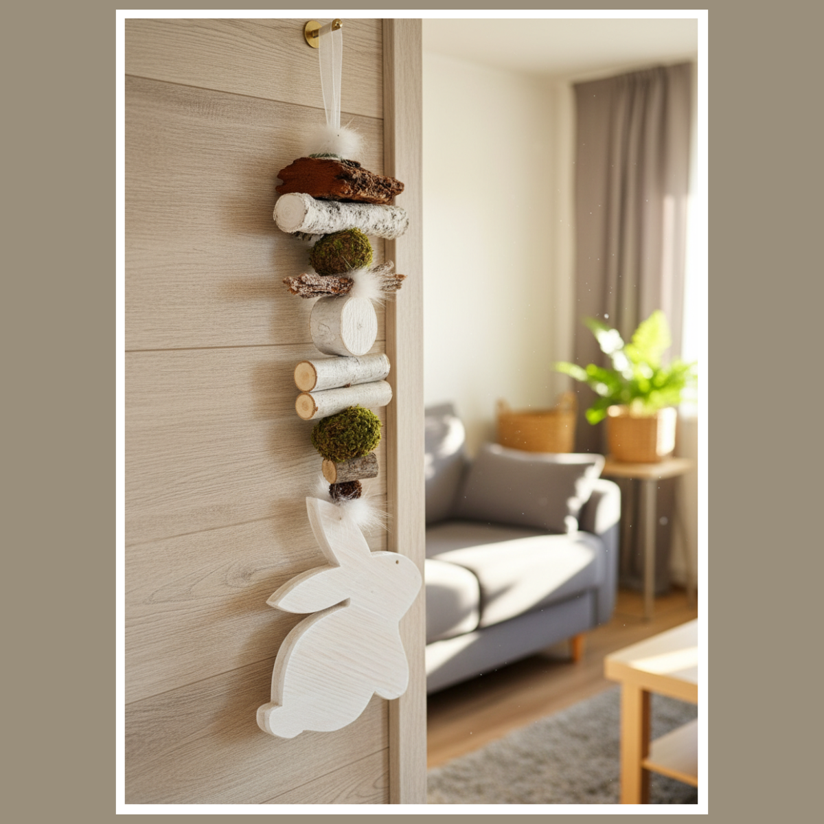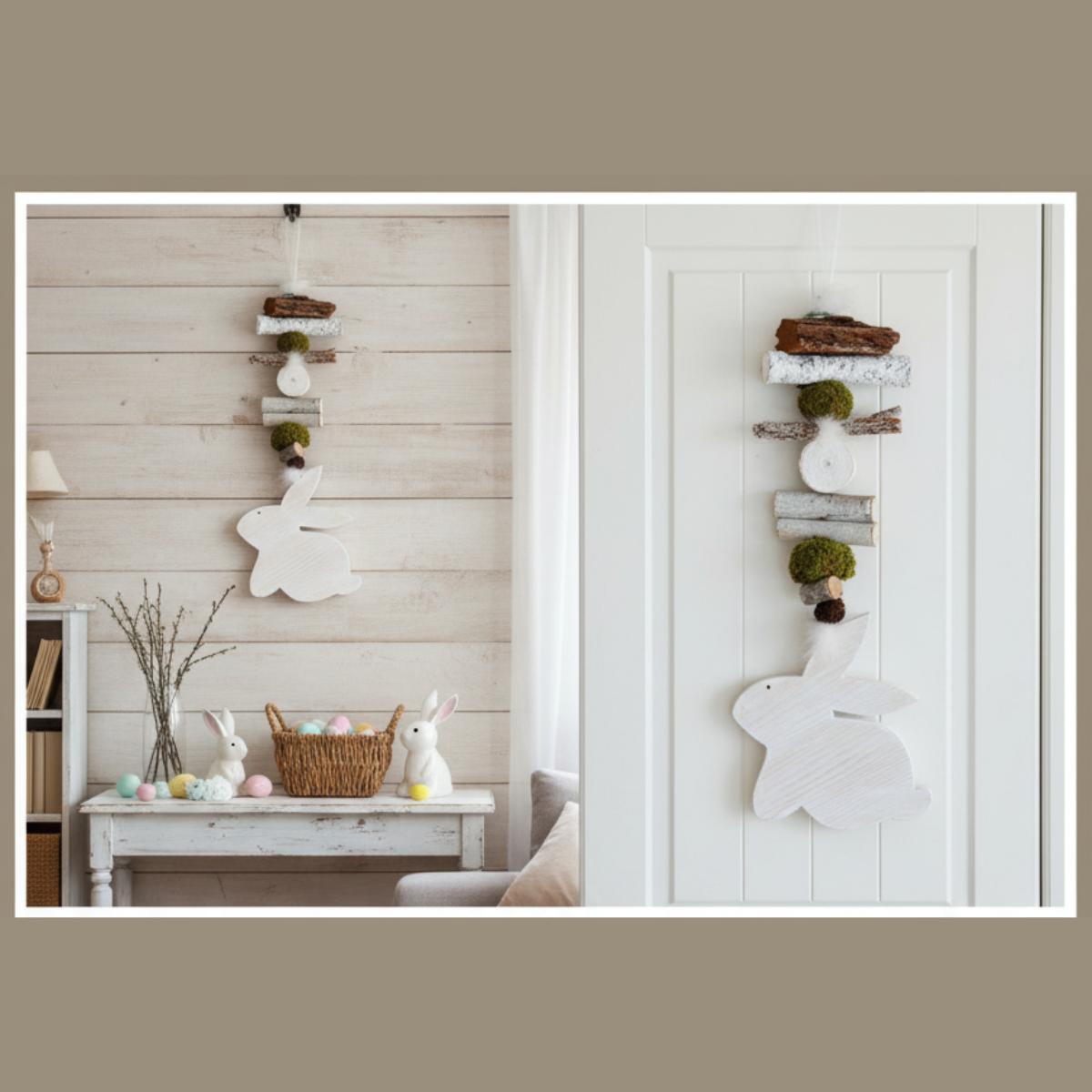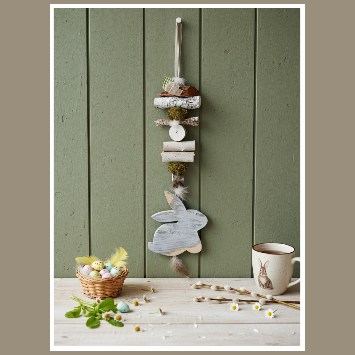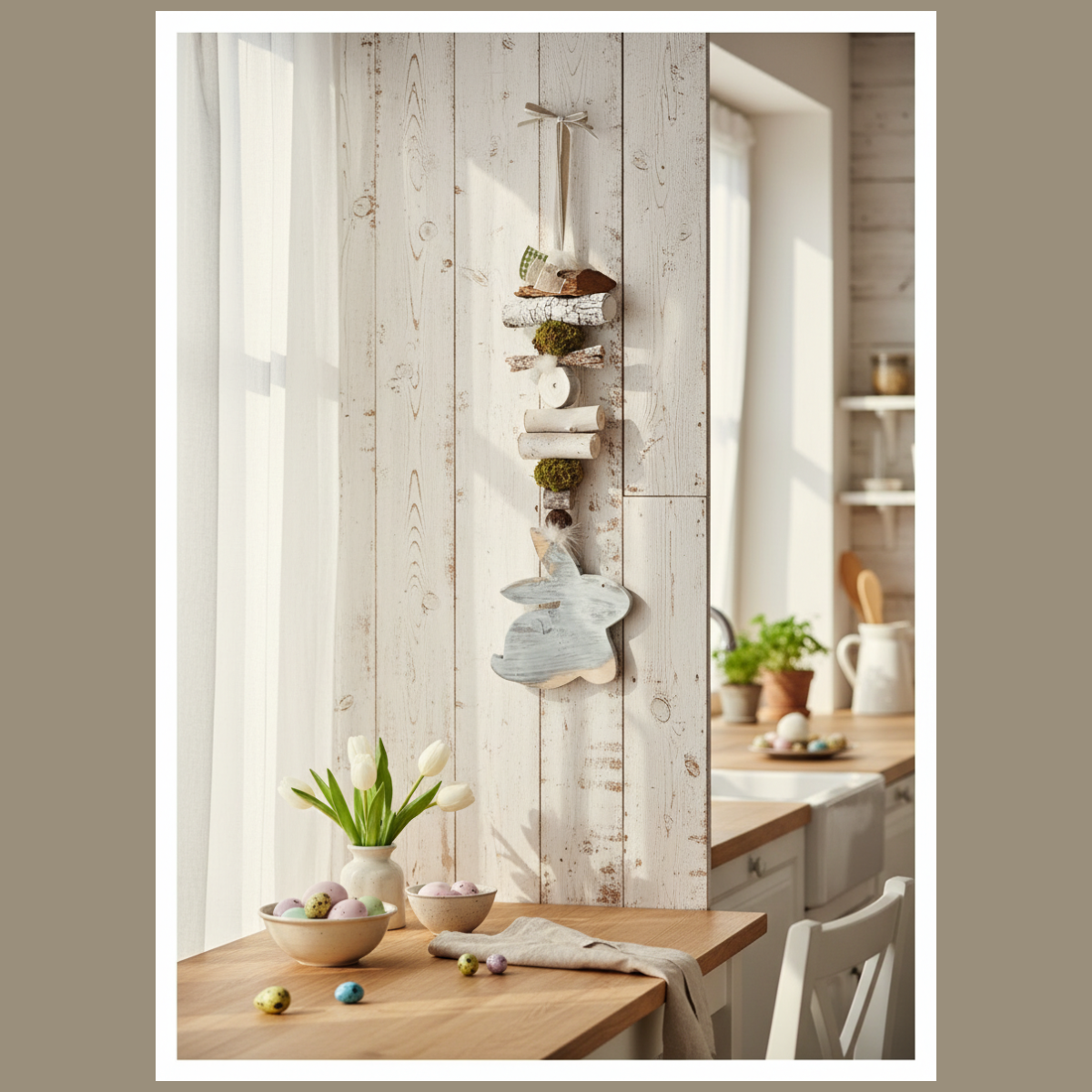 Wisząca dekoracja wielkanocna z zającem to wiosenny akcent, który od razu ociepla wnętrze. Jest lekka, a jednocześnie wyrazista. Dlatego pięknie prezentuje się na drzwiach, przy oknie lub na ścianie. Możesz ją zawiesić szybko i wygodnie, ponieważ nie wymaga skomplikowanego montażu.