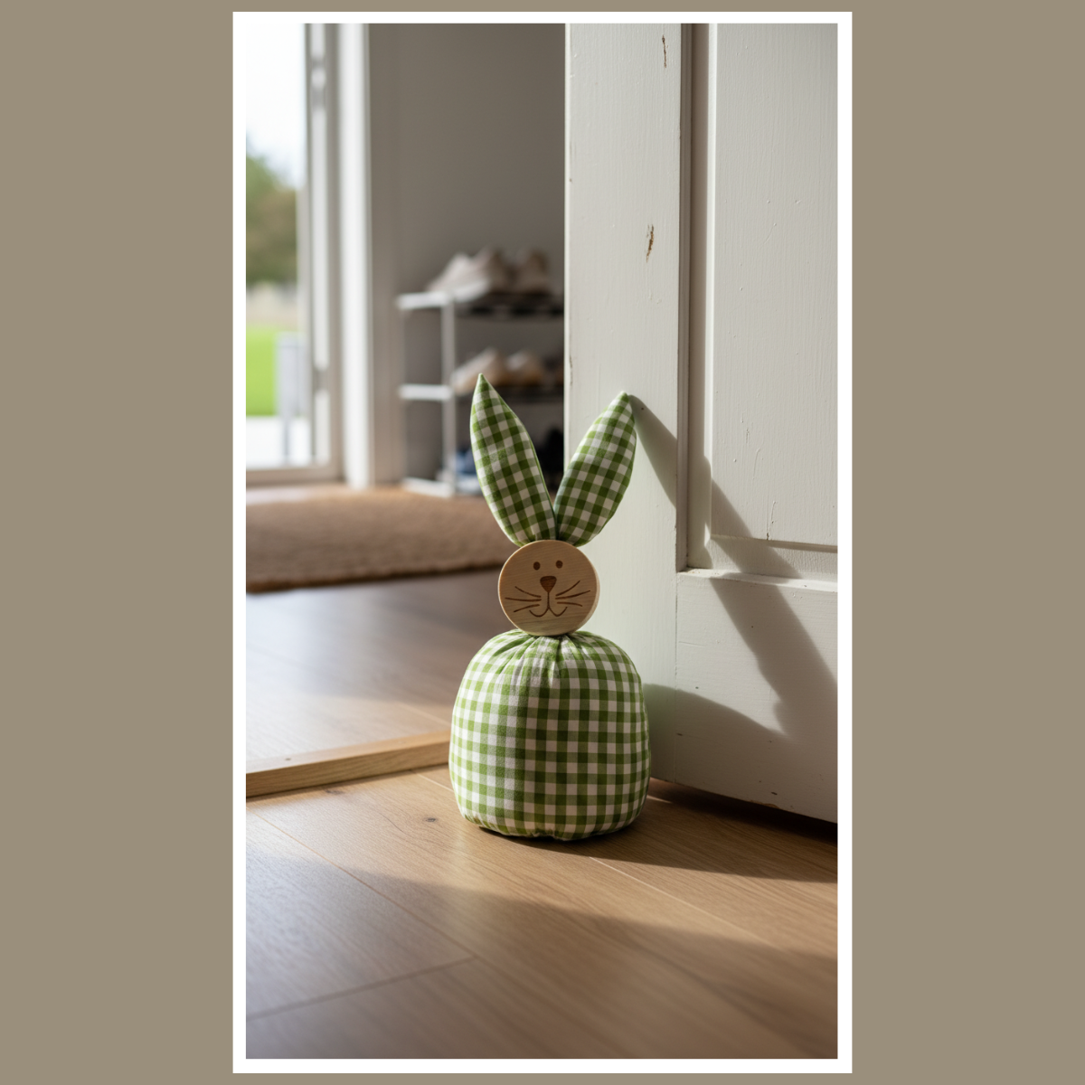 Zając stoper do drzwi w kratkę to nasza wiosenna propozycja, która łączy dekorację z funkcją. Jest miękki, ale stabilny. Jest też lekki wizualnie, a jednocześnie „robi klimat”. Dlatego świetnie sprawdzi się na Wielkanoc, ale i przez całą wiosnę.